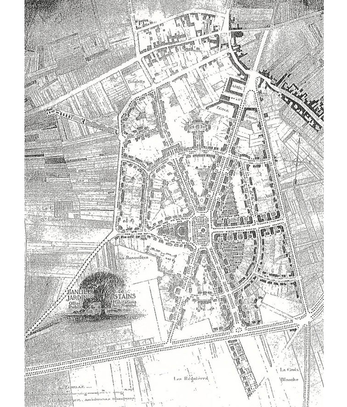 Stains se situe à 7km au nord de Paris. La Cité Jardin est l’un des témoignage historique d’un urbanisme remarquable des années 1930. Partie intégrante du centre-ville, cette dernière est en lien étroit et fonctionnel avec son faux jumeau, le quartier des grands ensembles du Clos Saint-Lazare. À cet égard, la ville de Stains raconte incroyablement bien, ne serait-ce qu’à travers ces deux quartiers mitoyens, l’histoire urbaine du début de XXe siècle et de l’urbanisme social en France.