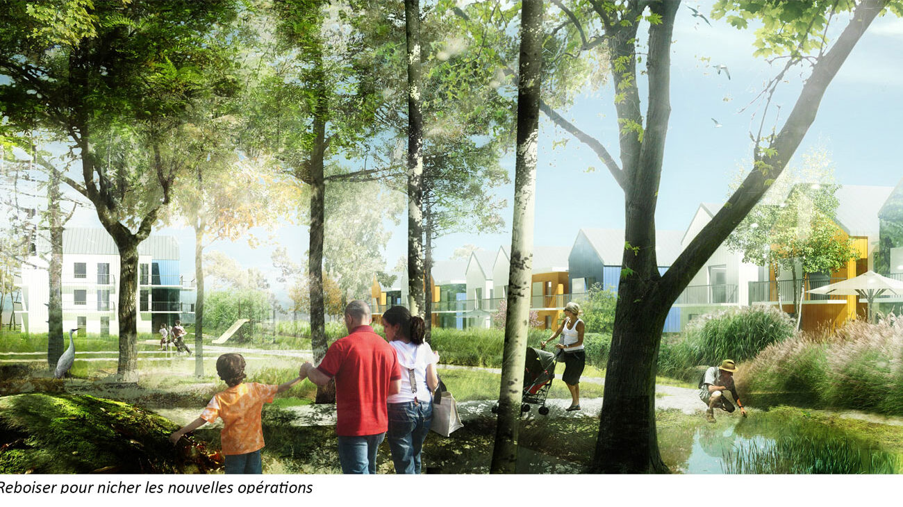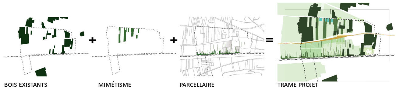 Le site fait partie d’un territoire aux couches multiples (palimpseste) dont il faut décrypter les signes et les identités. La question du paysage dépasse celle de la nature et des espaces verts : le paysage est la charpente du projet à partir de laquelle les formes urbaines se déclinent. Avant de créer les routes et de poser des gabarits construits, il faut créer l’écrin le plus favorable possible. Favorable à l’humain, quels que soient son âge et ses préoccupations ; favorable à la nature, élément incontesté du bien-être.