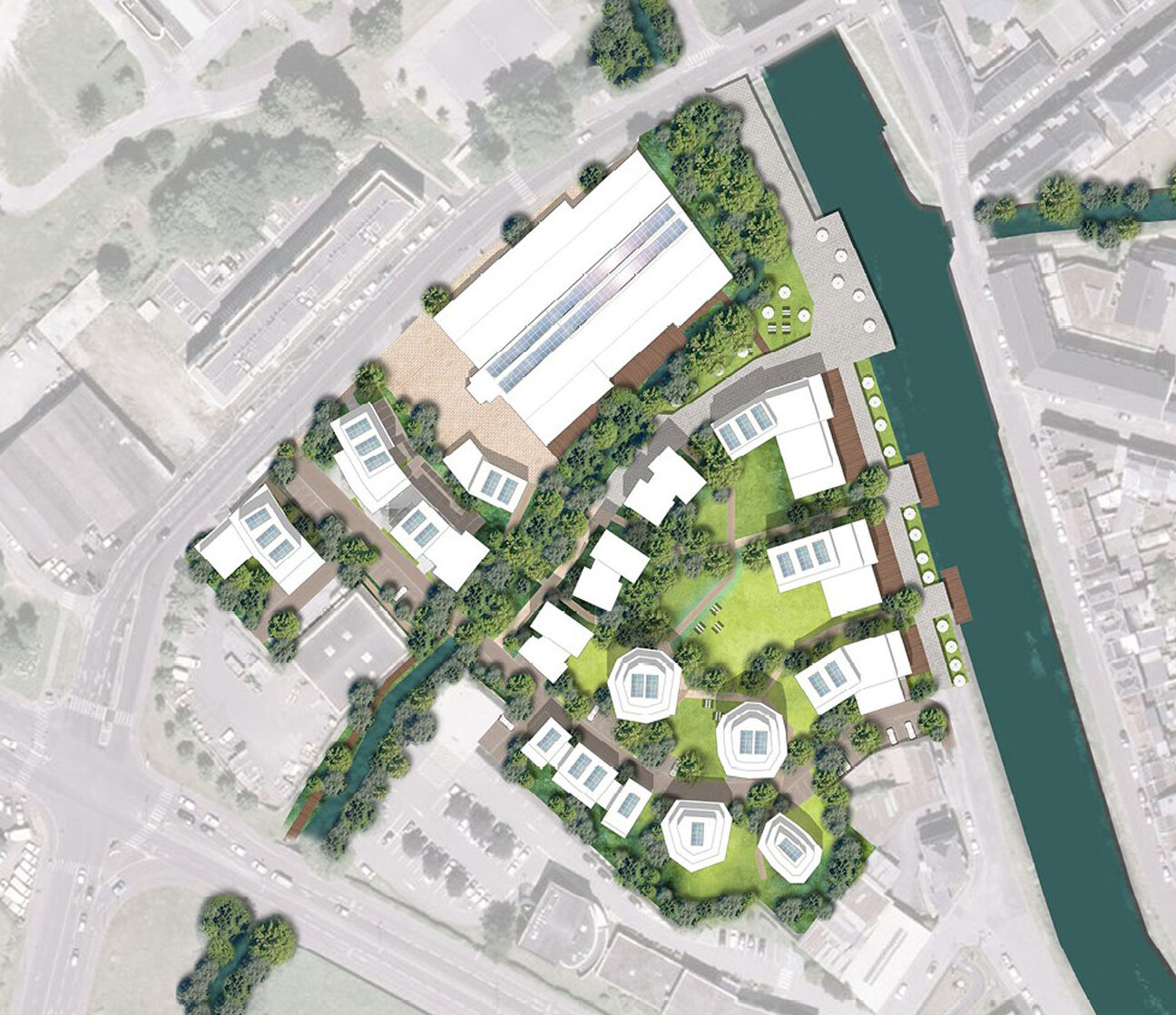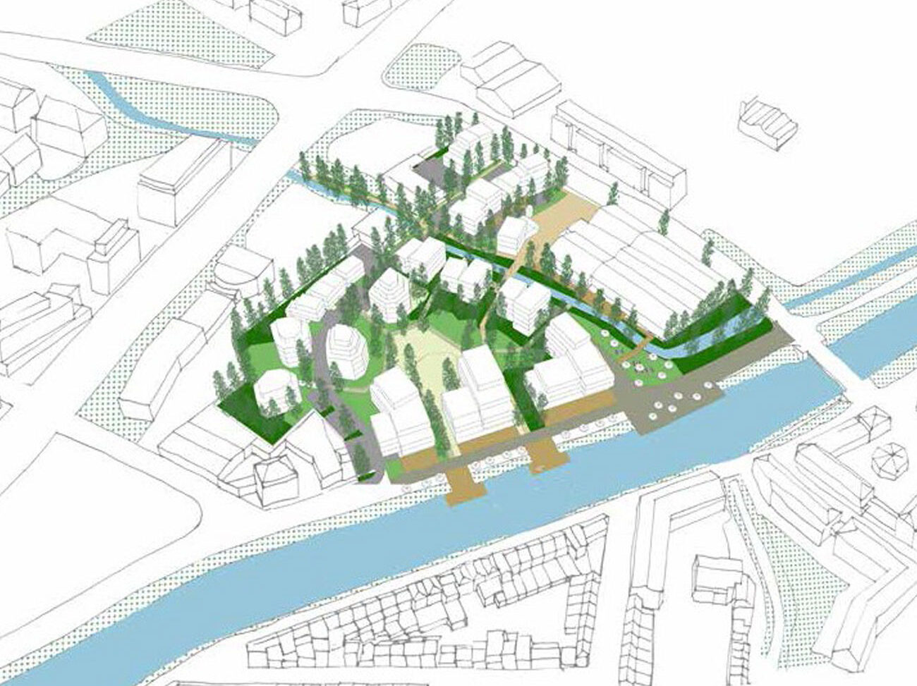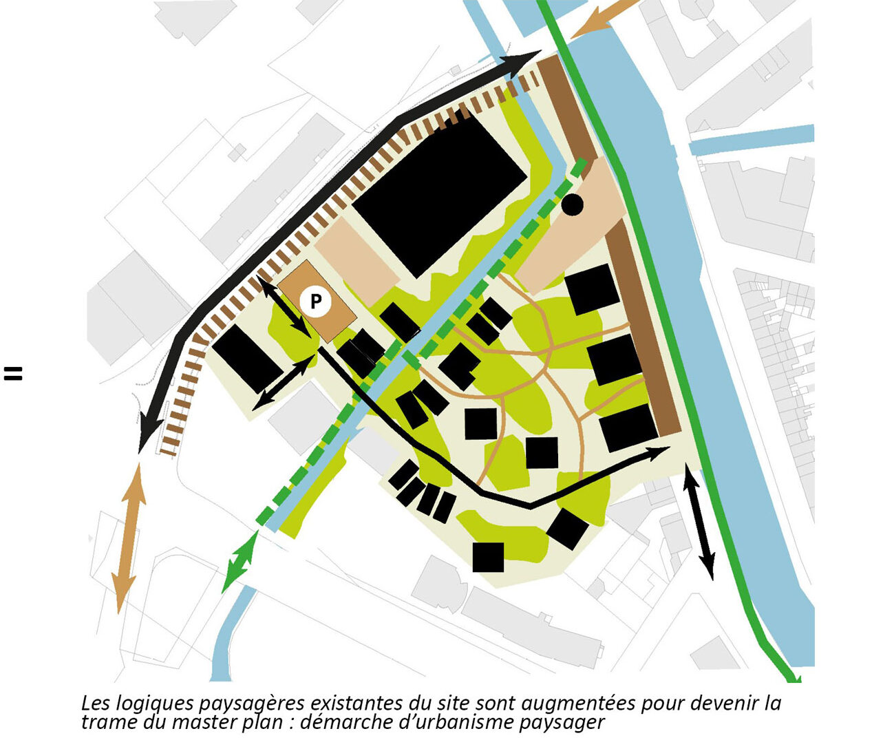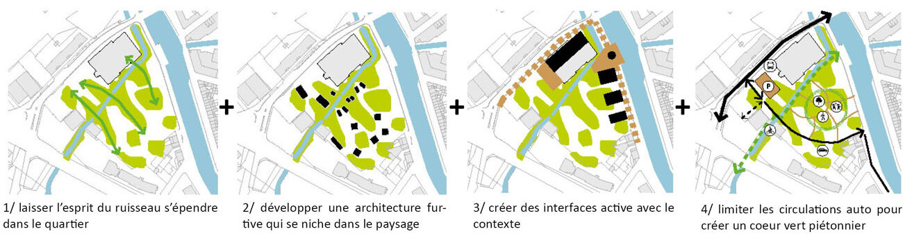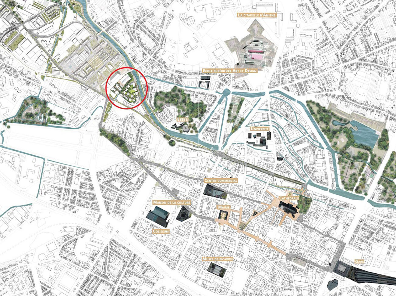 Ce projet s’inscrit dans une démarche globale de développement des quais de Somme par la Métropole. Le site d’étude est un lieu de transition des quais urbains vers les rives naturelles à l’ouest de la ville. Il est encore imprègné d’une ambiance industrielle. L’aménagement de ce quartier est une opportunité pour retrouver les continuités paysagères et écologiques perdues, liées à la présence de deux cours d’eau, la Somme et son affluent la Selle. Nous dessinons le quartier avec les caractéristiques paysagères préexistantes qu’il s’agit de mettre en valeur et d’augmenter. Faire émerger ce paysage au cœur du projet : en tant qu’aménité, en tant qu’identité, en tant que support écologique.